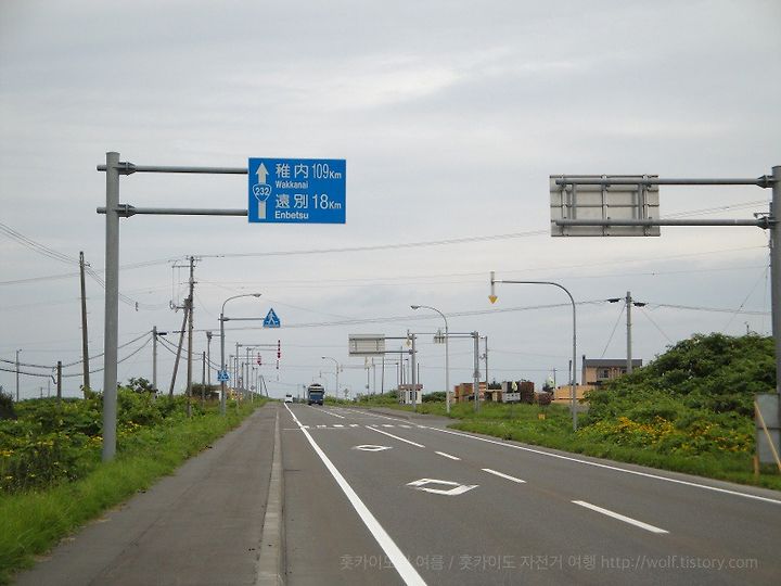 오늘의 목표인 왓카나이까지는 무려 109km. 자전거 여행을 할 때 보통 이동 거리는 80Km정도인데 오늘은 경사가 없는 직선 코스라 좀 길게 잡았다.