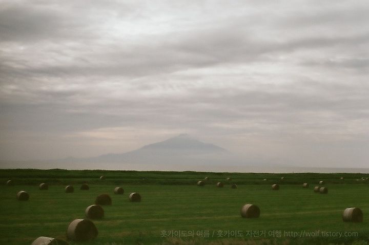 왓카나이에 가까워지자 멀리 섬위로 우뚝 솟은 산이 보였다. 일본에서 가장 북쪽에 있는 국립공원 '레분리시리사로베츠 국립공원'중 한 곳인, 리시리 섬의 '리시리후지'다! 점점 가까워지는 리시리 후지를 감상하며 달릴 수 있는 것도 오로론 라인만의 매력이다. ^^