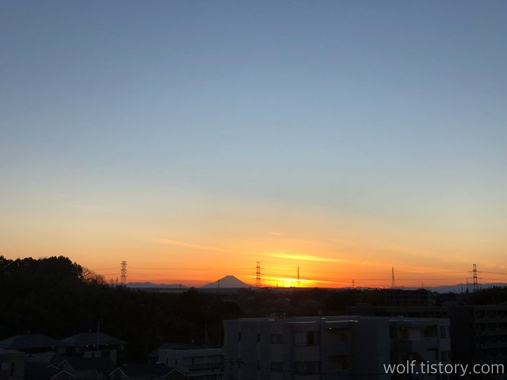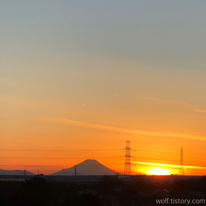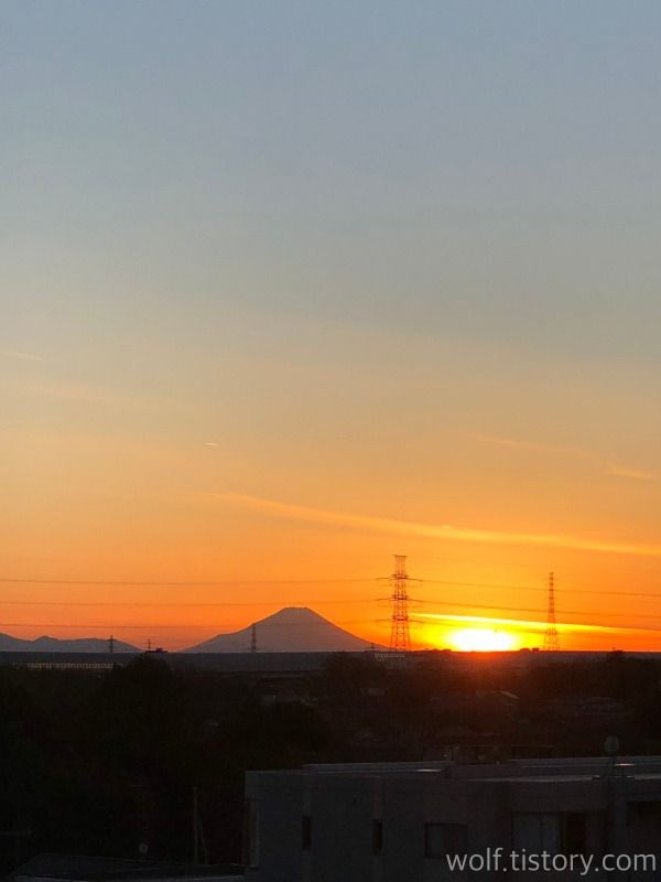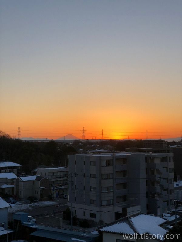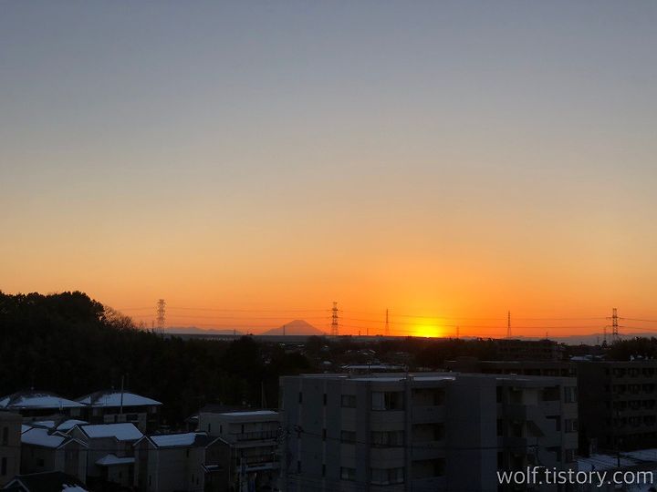 올 1월 사진. 이 때가 오후 4시 40분경이었다. 운 좋게 일몰과 후지산을 함께 볼 수 있던 날.